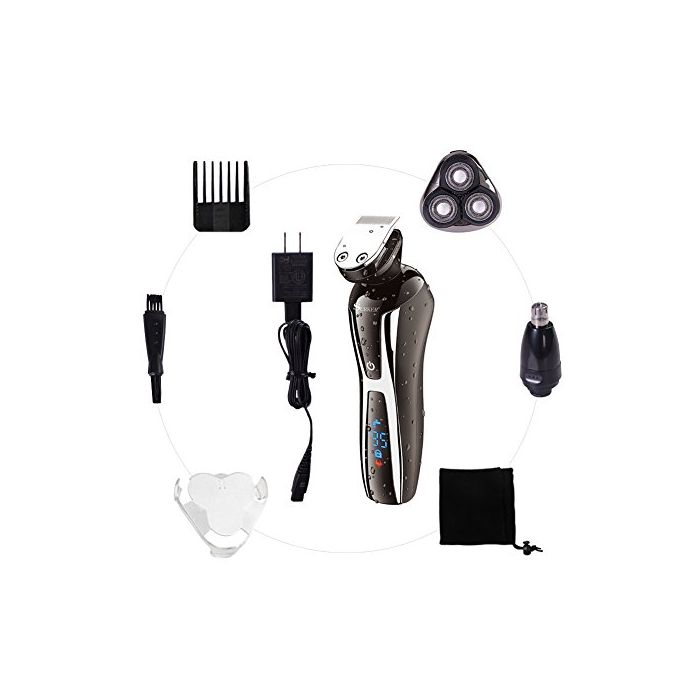 SURKER 전동 쉐이버 LED표시 3 매인회전식USB충전 방수 다기능 여행 용세척 전동 맨즈 쉐이버 헤어 커터/비모커터 본체 통째로 세탁 가능 욕실 깎아 가급속 충전가 피부에 상