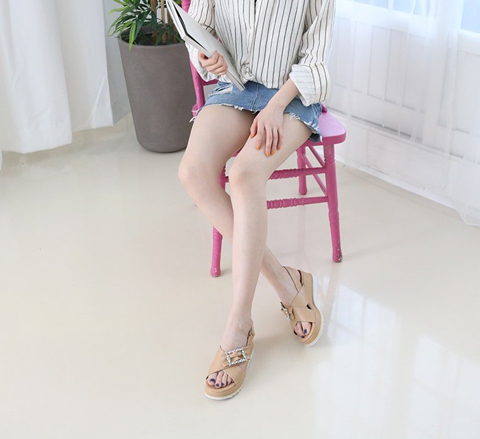 商品名:サンダル レディース 厚底 クロスストラップ スリングバック 2018 春 ファッション 靴 婦人靴