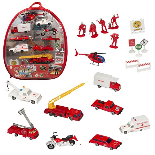 -. Binding : Toy -. Brand : Play Visions -. EAN : 0010984065650 -. Feature : Fire Department Themed Car Play Set that is Easy for Traveling. / Vehicle Play Set Includes 20 pieces of Fire Department Themed Vehicles and Objects, Plus a Vinyl Backpack. / Push and Pull these Vehicles Around with Ease on Different Surfaces Indoors or Outdoors. / Provides Lots of Speed, Action, and Interaction Amongst Children. Perfect for Pretend Play. / Recommended for Children Ages 3 and Above. -. Genre : Toy Car Sets -. IsAdultProduct : 0 -. ItemPartNumber : 6565 -. Label : Play Visions -. Manufacturer : Play Visions -. MPN : 6565 -. PackageQuantity : 1 -. PartNumber : 6565 -. ProductGroup : Toy -. ProductTypeName : TOYS_AND_GAMES -. Publisher : Play Visions -. Studio : Play Visions -. Title : Fire Department Car Set - 20 Different Die-Cast Portable Emergency Related Vehicles - Play Set in a Backpack -. UPC : 010984065650