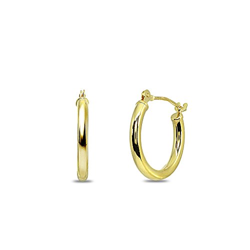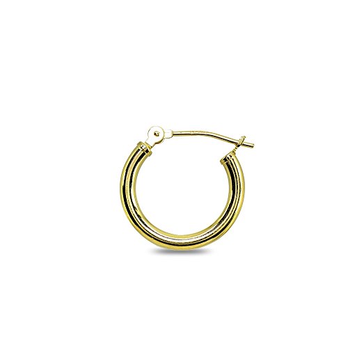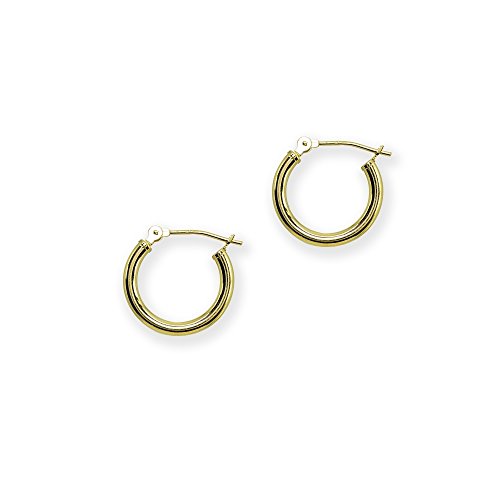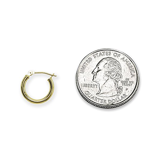 10K Yellow Gold 2mm Round Hoop Earrings, 15mm