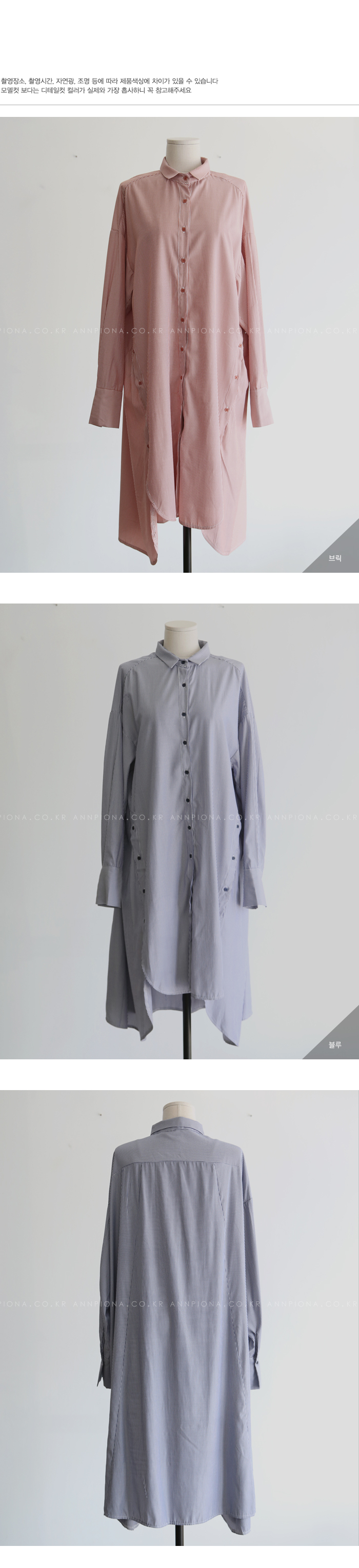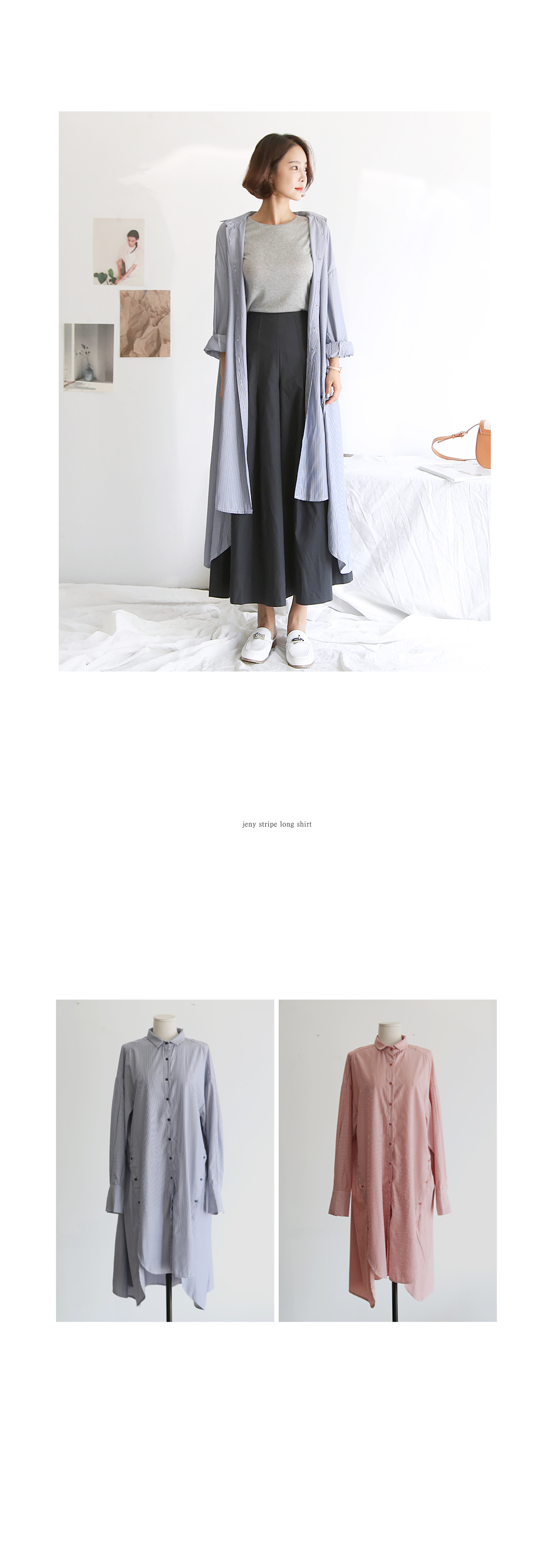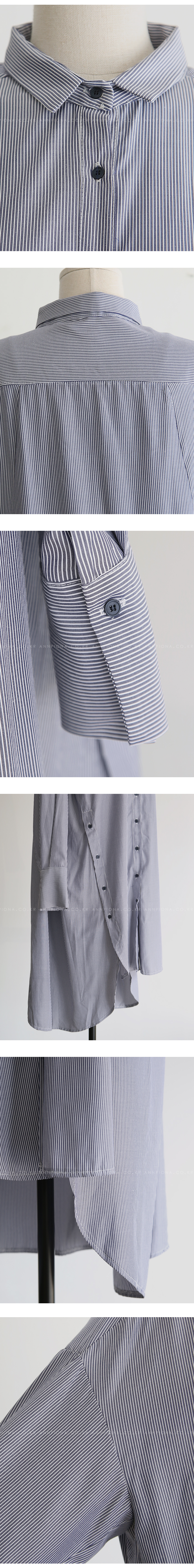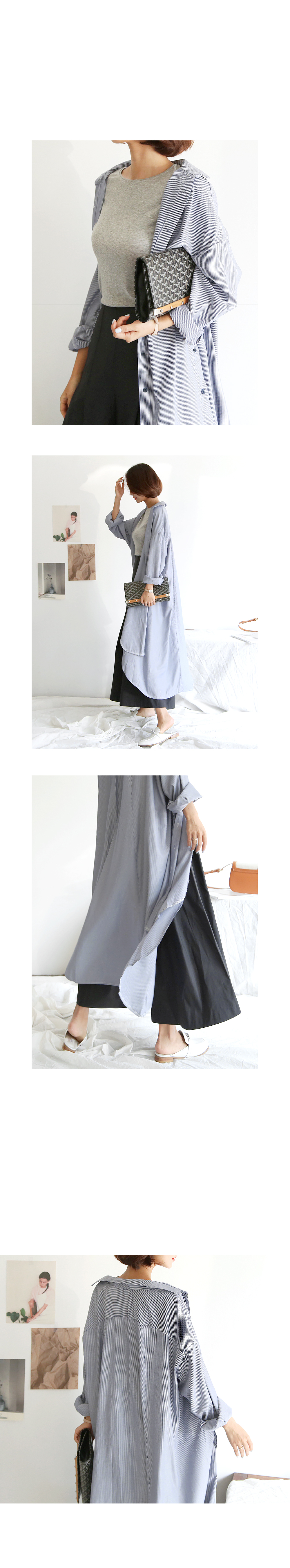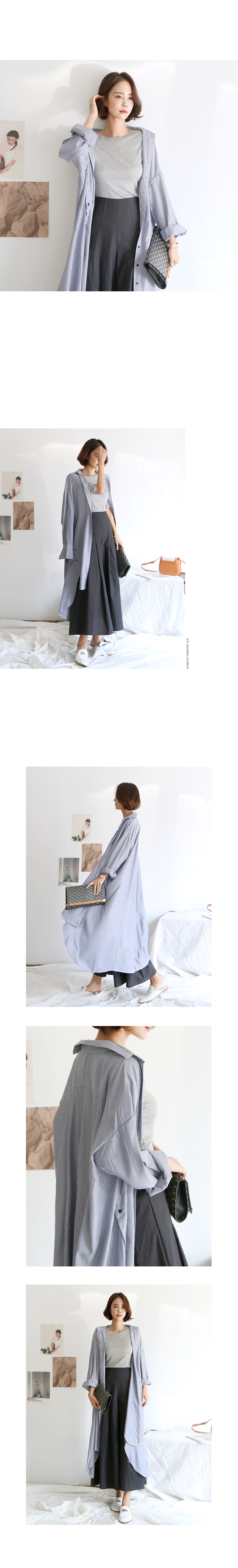 롱한 길이감의 스트라이프 셔츠입니다