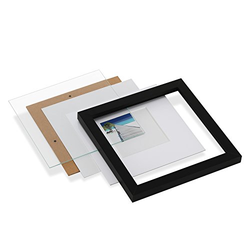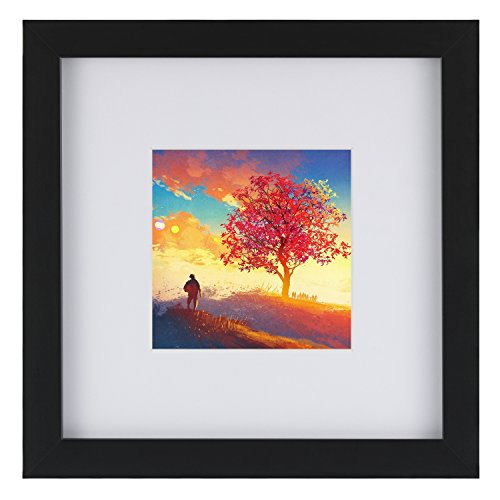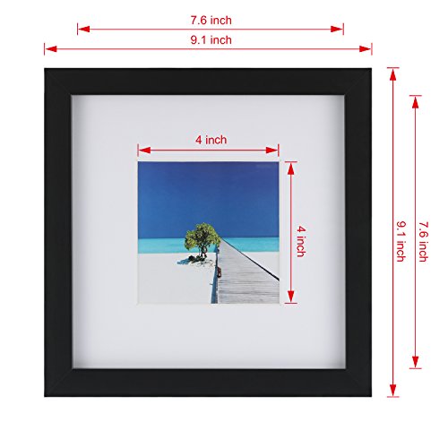 ELEGANT DESIGN- Our black picture frames fit 8 x 8" inch photo without mat. Come with 9 mats: 9 matted mats exactly fit 4 x 4" inch photo. The frames can be displayed by hang up or stand on the desk.