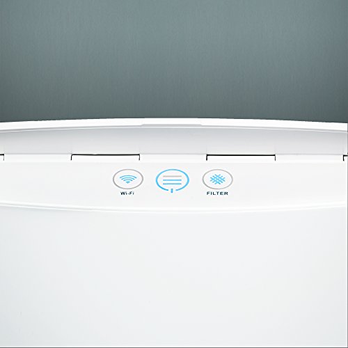 -. Feature : High performance HEPASilent filtration air purifier, Wi-Fi enabled for control from smartphone / 3 fan speeds and whisper-quiet operation is ideal for a kitchen or large bedroom up to 434 sq ft / Particle filter removes 99.97% of airborne pollutants & allergens: mold, dust, pet dander and pollen / SmokeStop filter with activated carbon available for smoke, odor, and VOC removal (sold separately) / Easily extend standard 1-year warranty to 5 years with unit registration within 60 days of purchase