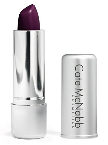 Satin finish, deep purple lipstick. Cate McNabb lipsticks were chosen as a full-color range of intensely hydrating, fashion-forward shades. Providing full-on, long-lasting color, these lipsticks are packed with shea butter, sunflower seed oil, and olive oil to thoroughly soften, soothe, and hydrate the lips.Feature