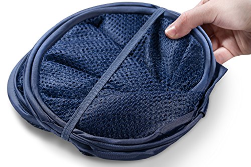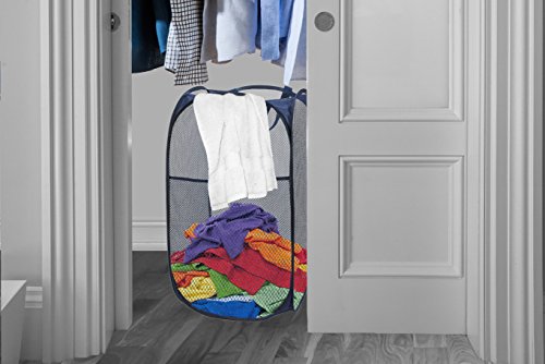 Mesh Pop-Up Laundry Hamper - 14" x 24" - Easy to Open and Folds Flat for Storage. Hampers Mesh Material Helps Eliminate Laundry Odors and Moisture. Great Laundry Hamper for College Dorm. (Navy Blue)