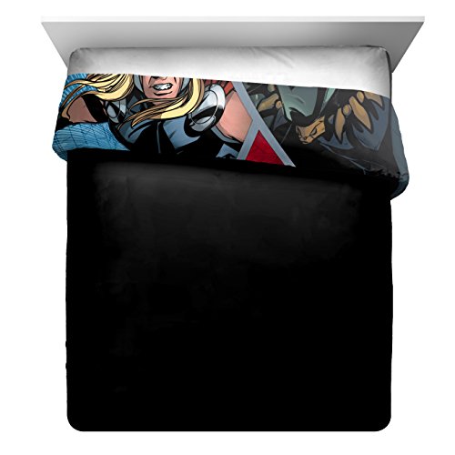 Join your favorite Heroes on a wild adventure with this bold and sophisticated Marvel Avengers metal reversible full/queen comforter and sham set. Each 3 piece comforter set includes one comforter and two standard bed pillow shams. Sure to keep you warm, this reversible microfiber comforter is stuffed with polyester fill for loft and cozy comfort. Quilt stitching holds fill in place and adds decorative flair. Durable polyester fill is soft, comfy and warm and holds its shape after multiple washings. Reversible design allows you to instantly change the look by simply flipping the comforter over. Full/queen comforter measures 81" x 86" and standard shams measure 20" x 26". easy care, machine washable. Imported.Feature