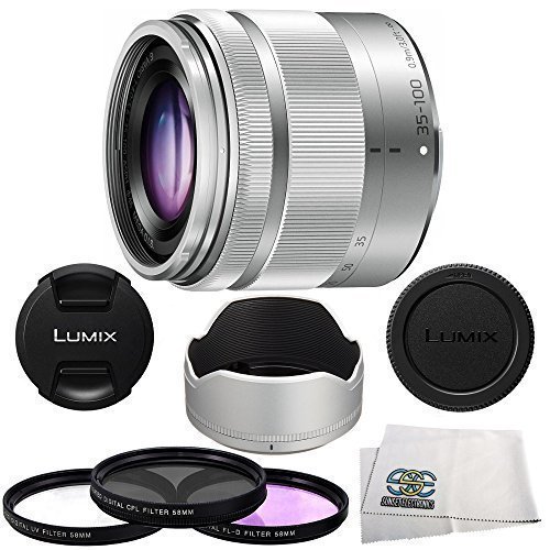 Panasonic 35-100mm f/4-5.6 Interchangeable Zoom Lens (Silver) (White Box) + 4 Piece Essential Accessory Kit
