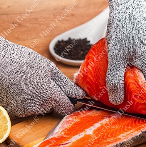 -. Title : HushGecko® Cut Resistant Gloves Level 5 Hand Protection Dyneema Polyethylene Safety Food Grade Palm Kitchen Work