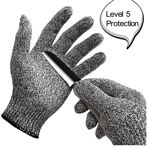 -. Feature : DURABILITY - made of Dyneema (ultra-high-molecular-weight Polyethylene), 4x stronger than leather / HIGHEST STANDARD - meet EN388 level 5, highest level of cut resistance standard, protecting your hands from scrapes and cuts / COMFORTABLE - comfortable protection without the bulk. These gloves are stretchable, lightweight, breathable, and highly elastic. Superior grip with a snug fit for small and large hands - prepare food or work on jobs requiring precision with complete dexterity / SAFETY - 100% food safe and machine washable - to keep your gloves clean, simply machine wash them following the product care instructions / DEXTERITY - perfect for cutting, slicing, shucking, peeling, and grating in the kitchen, pumpkin/wood carving, carpentry, as well as dealing with broken glass