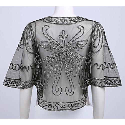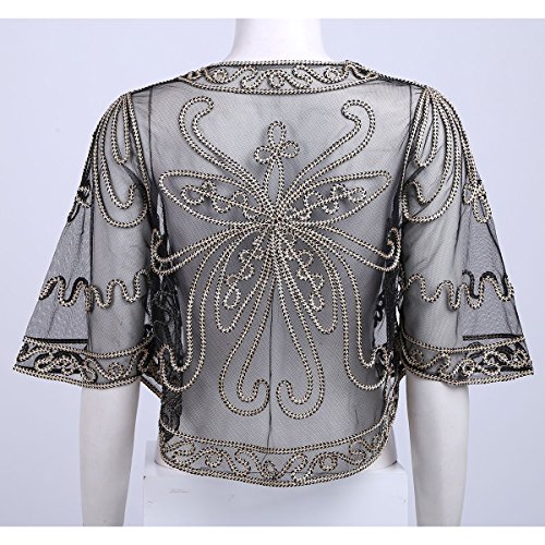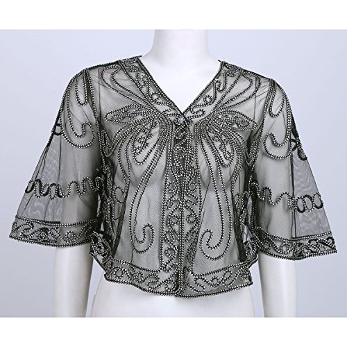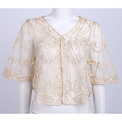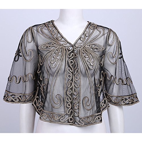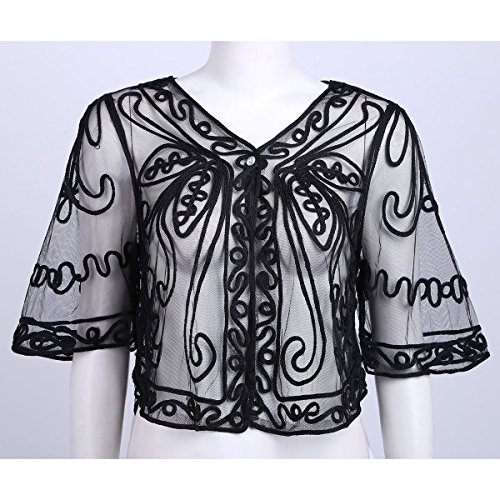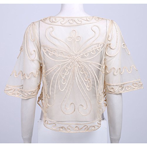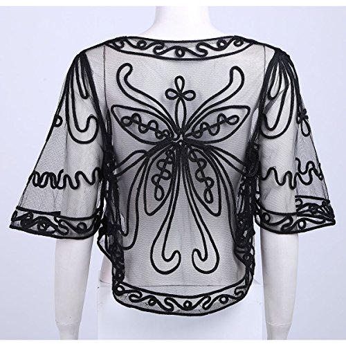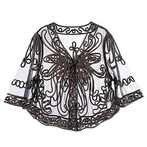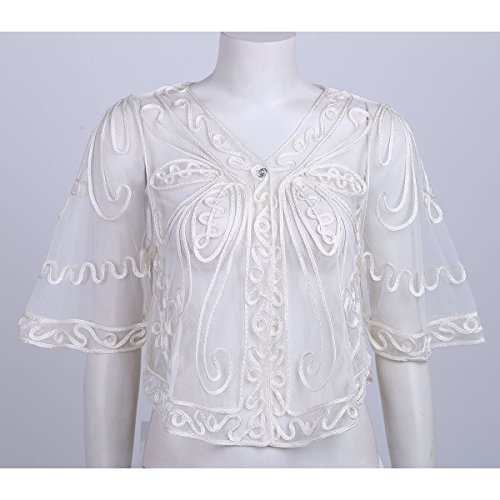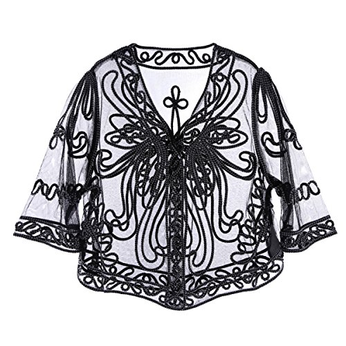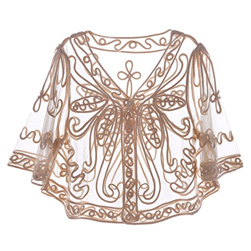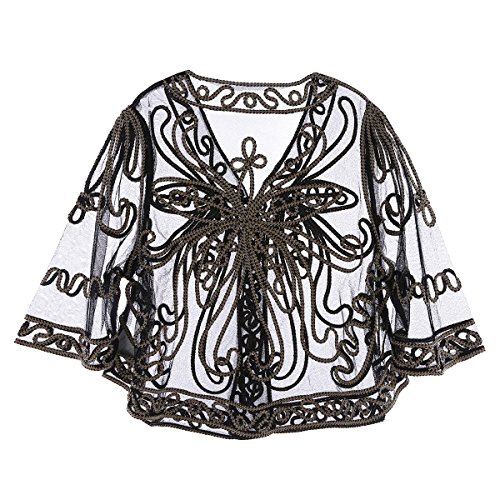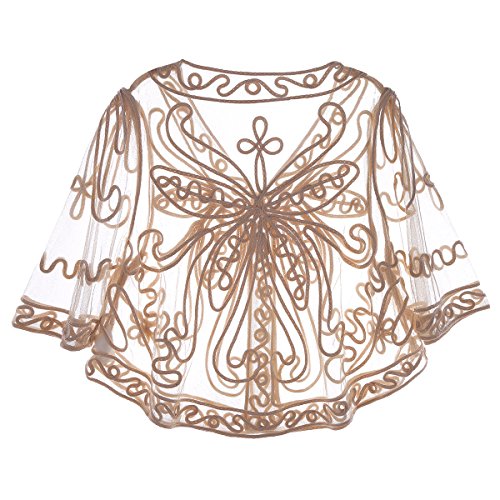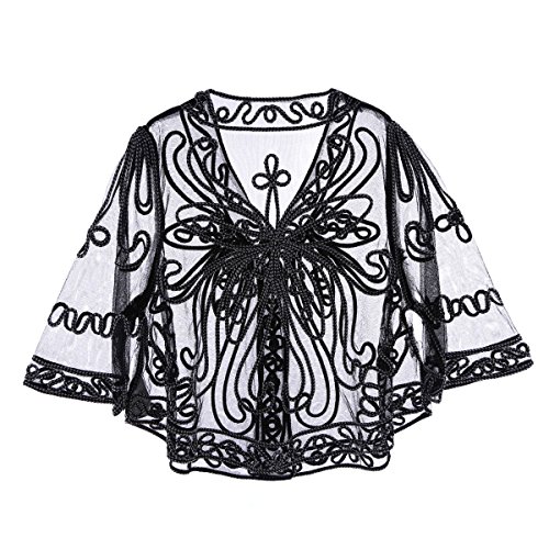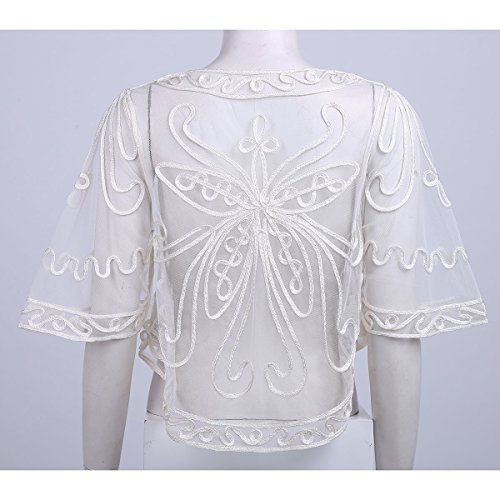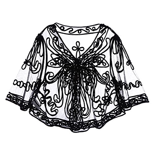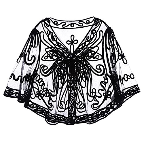 (FEESHOW)/Accessories/Scarves/DIRECT FROM USA/FEESHOW Embroidery Evening Cape 1920s Shawl Wraps Flapper Cover Up Wedding Bridal Shawl Scarf f...