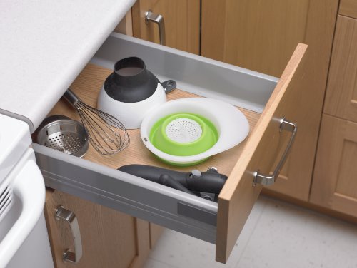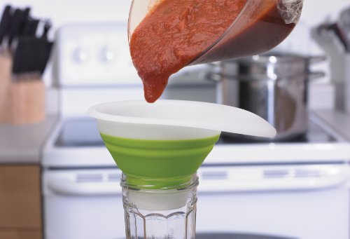 -. Feature : Wide mouth funnel for canning jars, green/ transparent color / Removable strainer, larger comfort handle / Heat resistant up to 250° F / Expand to use, collapse to store / Dishwasher safe