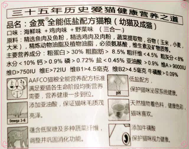 1, AAFCO cat food universal comprehensive nutrition standard formula,meet the cat in each growth stage sufficient nutrition, delicious and healthyin one step.
