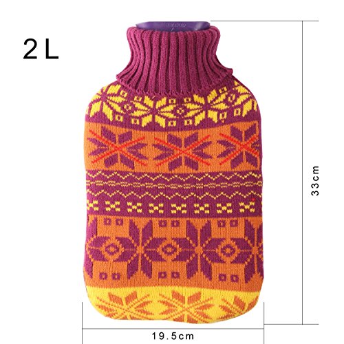 2 Liter Premium Classic Rubber Hot Water Bottle w/ Cute Knit Cover (2 Liter, Purple / Christmas Snowflake)