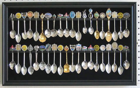 40 SPOON DISPLAY CASE CABINET HOLDER RACK WITH GLASS DOOR, WALL MOUNTED -BLACK FINISH (SP04-BL)