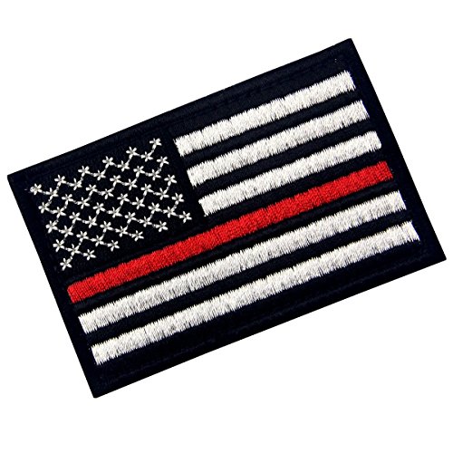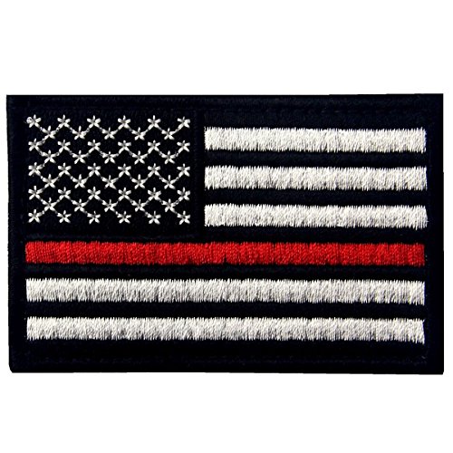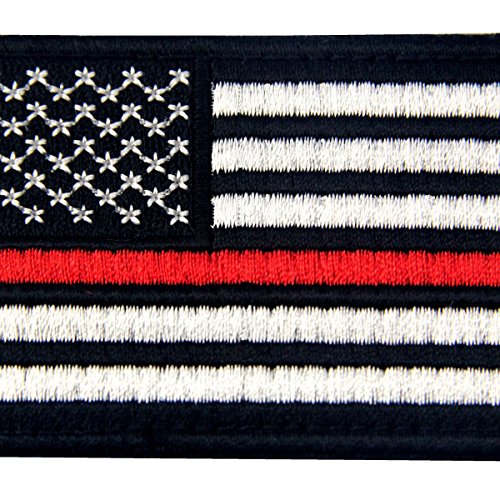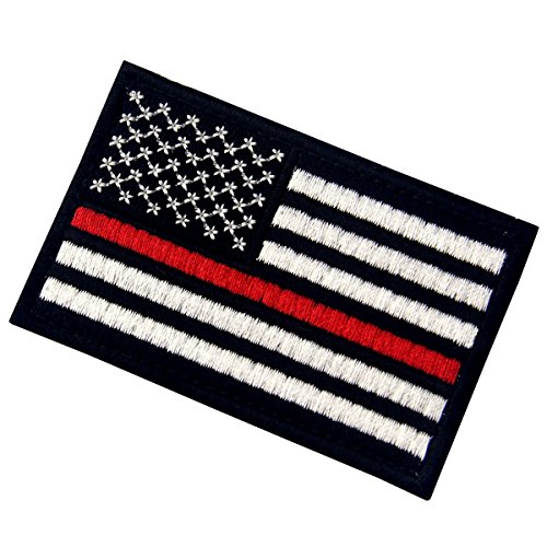 Tactical Embroidered Thin Red Line USA Flag Fastener Hook & Loop Patch