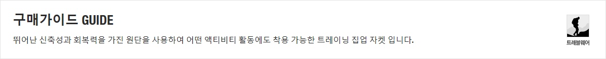 뛰어난 신축성과 회복력을 가진 원단을 사용하여 어떤 액티비티 활동에도 착용 가능한 트레이닝 집업 자켓 입니다.