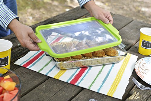 Set contains: (1) 3-quart baking dish with green TrueFit Lid