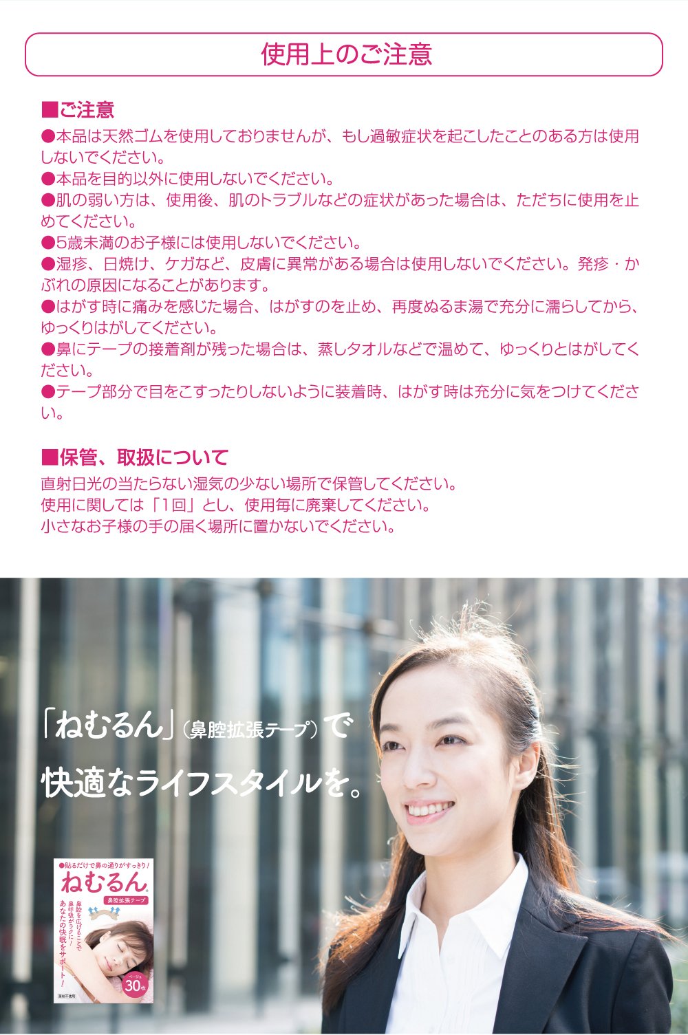 Elimination of stuffy nose It is effective also for snoring No need to worry about side effects as drugs are not used!