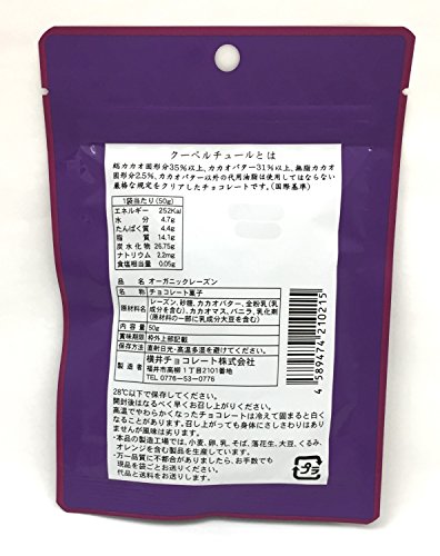 原材料:レーズン、砂糖、カカオバター、全粉乳(乳成分を含む)、カカオマス、バニラ、乳化剤(原材料の一部に乳成分大豆を含む)