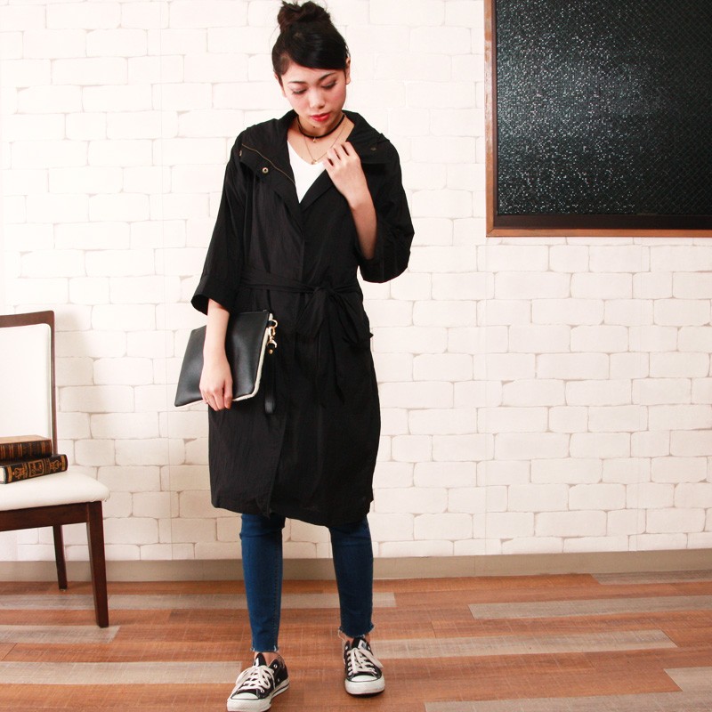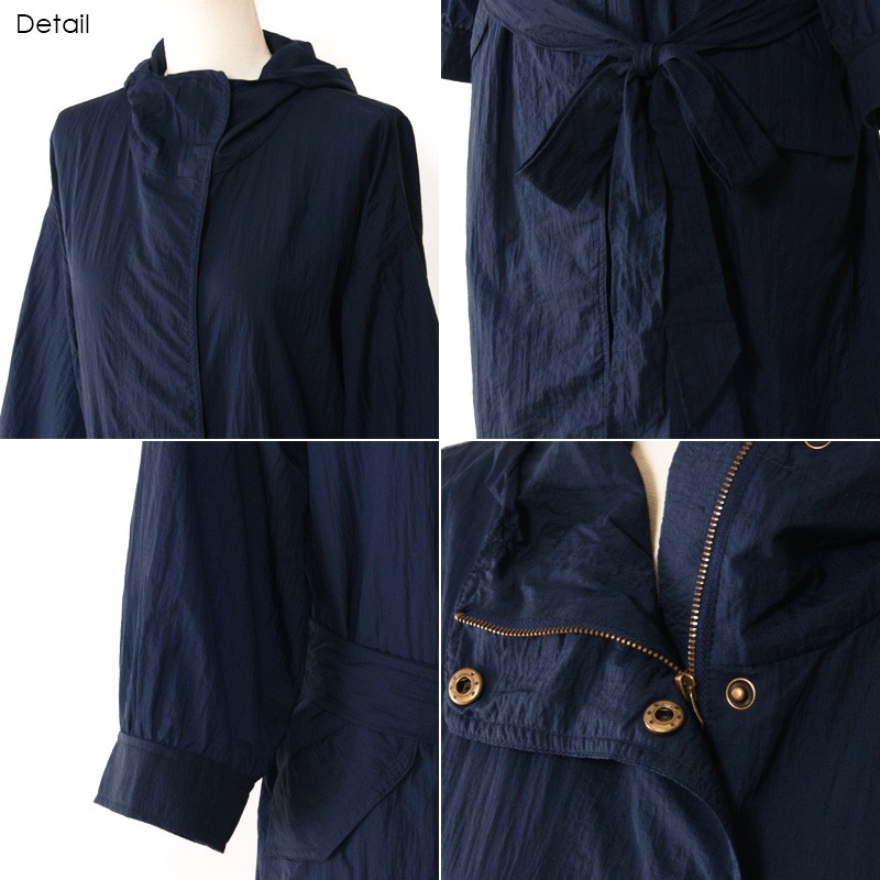 | サイズ | Mサイズ | | 実寸 | 着丈:約99cm 肩幅:約42cm 袖丈:約35cm 身幅:約45cm ※すべて平置きサイズです。 | | 素材 | ナイロン100% | | 生産国 | 中国 | | 裏地 | なし | | 生地の伸縮 | なし | | 生地の透け感 | なし | | カラー | 01. 黒 02. カーキ 03. ネイビー 04. ダスティピンク | | 注意点 | ▼綿混合商品は洗濯時に多少縮む事がございます。 ▼パソコン、モニター等の環境により、実際の商品素材カラーが多少異なる場合が御座います。予めご了承ください。 ▼お手数ですが必ずお買い物ガイドを一読頂いてからご利用いただきますようお願い申し上げます。 | |