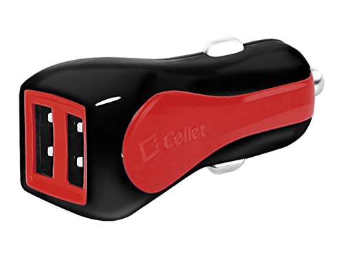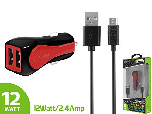 Cellet Rapidcharge Dual Micro USB Cable Car Charger for Universal Smartphones - Retail Packaging - Red