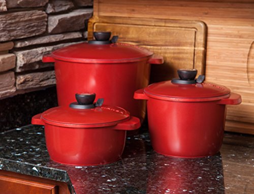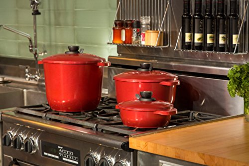 Lightweight, easy to use pans are great for steaming, simmering, baking, roasting, stir-frying and boiling. The heavy-duty die cast aluminum construction conducts heat efficiently, and the induction ready base makes the pan compatible with electric, gas and induction cooktops. This versatile pan is perfect for soup, chili, corn on the cob and more. The body is oven safe to 450°F, and the lid is oven safe to 350°F. Pans are dishwasher-friendly, but handwashing is recommended.Feature