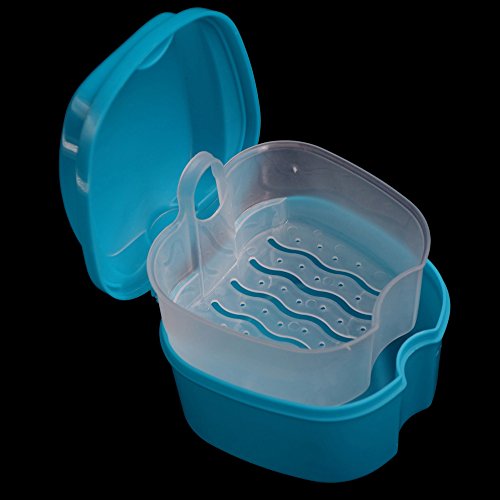 KaLaiXing brand Denture Bath - Storage Container for Soaking Dentures, Retainers & other Dental Appliances--dark blue