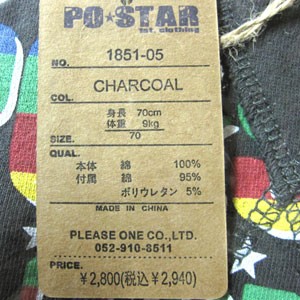 | 【ベビー服・子供服のプリーズワン】 ベビー・キッズからジュニアまで幅広いサイズを取り扱っております。 ポスター、ラスクをはじめ人気のスポーツブランドも取り扱っています。アウトレット 訳あり商品 季節セール 送料無料商品などお得なコーナーや入園入学準備 お祝い プレゼント カジュアル服 インポートなどの子供服が揃っています。 ●全国一律送料540円(税込) ●5,400円(税込)以上お買い上げで送料無料! ●メール便 164円(A4サイズ厚さ2cmまで) 82円(厚さ1cmまで) 【取扱いサイズ】 60cm/70cm/80cm/90cm/95cm/100cm/110cm/120cm/130cm/140cm/150cm/160cm 10cm/11cm/12cm/13cm/14cm/15cm/16cm/17cm/18cm/19cm/20cm/21cm/22cm/23cm XXS/XS/S/M/L/XL US:2T/3T/4/5/6/7/8/10 大人サイズ アダルトサイズも取り扱っています。 |