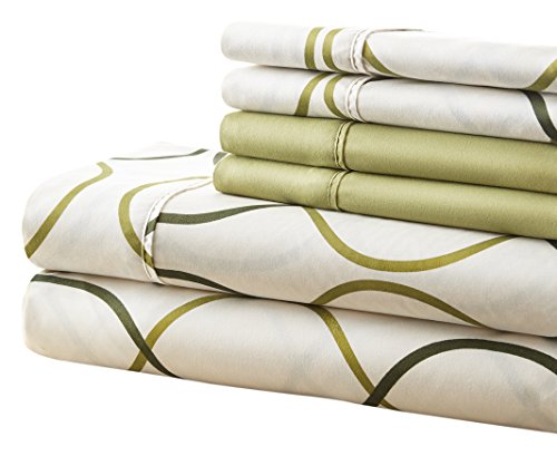 Spirit Linen, Inc Hotel 5th Ave Full Green Circles 6 Piece Bellagio Home Collection Sheet Set