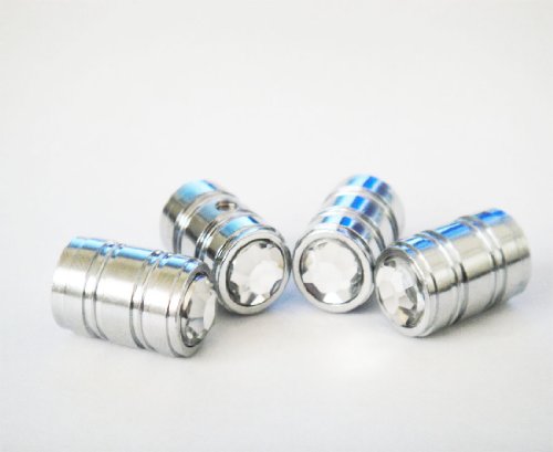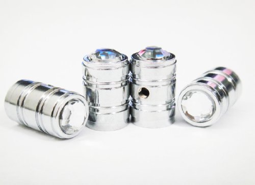 (MOSMA)/Accessories/Valve Stems Caps/DIRECT FROM USA/Bling Anti-Theft Locking System White Diamond Rhinestone Metal Chrome Tire Rim Valve Stem Cap-VC-WHE