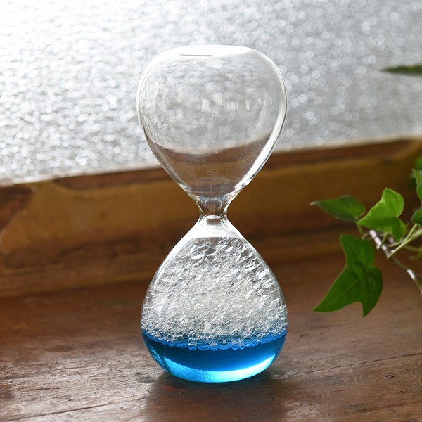 Fun Science 泡時計 ブルー インテリア  商品仕様:(約)H150×W65×D65mm、重さ(約)120g ホウケイ酸ガラス、石けん水 カラー:ブルー
