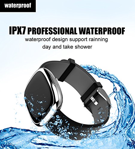 HD Translucidus mirror surface with 0.96" Touch Screen design, Shows Steps, Calories Burned, Distance, Date and Time, etc these data clearly; you can select or control each function by touching screen. IP67 Waterproof, not afraid of washing hands, walking under rain.