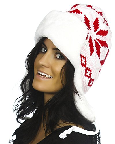 Simplicity Cold Weather / Winter Knitted Faux Fur Trooper Hat w/ Earflaps, Ivory