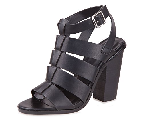 (BALDI)/Women's/Sandals/DIRECT FROM USA/BALDI Women's Sennett Black City High Wide Heel Peep Toe Event Sandals Ankle Strap Buckle Shoes