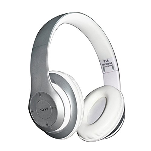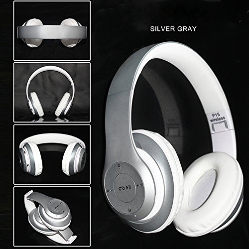 Head-Mounted Bluetooth Headphones-BTSShop Over Ear Foldable P15 Wireless V4.1 Earphone HandsFree Music Stereo Headset With Mic/FM/TF Card/AUX Function (Silver)