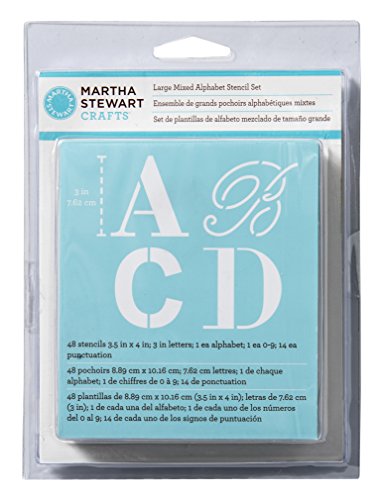 Personalize your craft projects with monograms, names, and messages in the Martha Stewart Crafts alpha stencil. This package contains 48 stencils-upper and lower alphabet, numbers, punctuation, and decorative elements-plus instructions. The font size is 3-inches.
