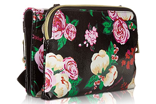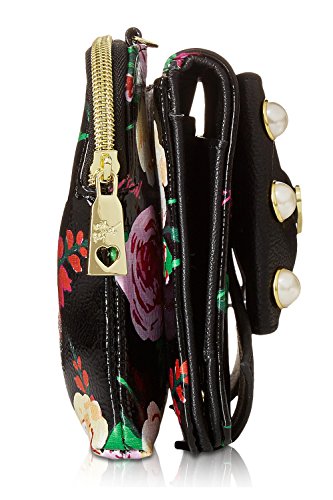 For the perfect blend of fashion and function, get the stylish Betsey Johnson wallet on string. Its constructed of all soft faux leather exterior, featuring Top zipper open pocket with wall zip and 2 slip pockets, snap front flap pocket with 2 bill, 6 credit card and hear mirror detail, attached cross-body strap offers security while wearing.