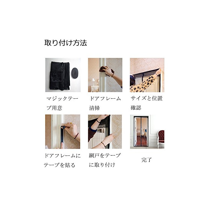 『설치 간단』:나사나 공구 불요,도어 프레임에 양면 테이프를 사용하는 것만으로,붙이기 성과,여성에서도 독립에 설치됩니다.또한좌우의 합해의 마그넷식이기 때문에,여는 대로 닫고, 소음 없습니다.(본 상품에는 2개의 매직 테이프를 부속 되고 있습니다.)