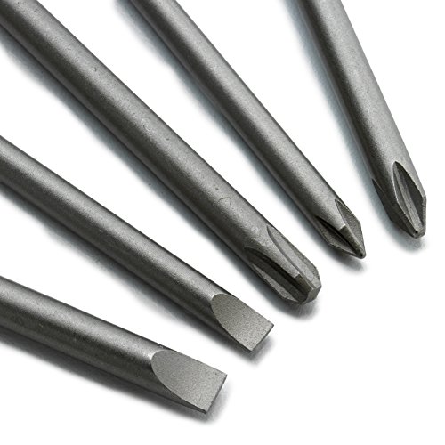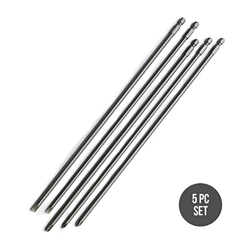 Neiko 10043A Phillips and Flathead Screwdriver Power Driver Bit Set, 5 Piece | 12" Extra Long Length | 1/4" Shank