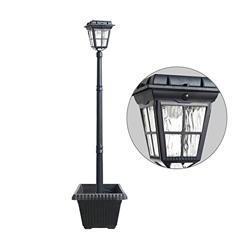 Decorative style: This classic cast-aluminum lamp post, ripple glass and square plastic planter provides not only functional lighting but also attractive decoration for your yard