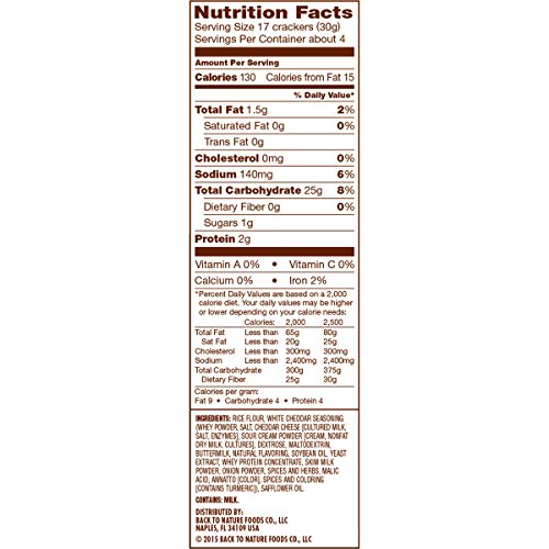 -. Title : Back to Nature Gluten Free Rice Thins, White Cheddar, 4 Ounce
