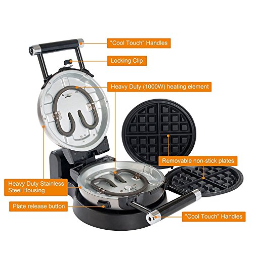 Create deep-pocket Belgian waffles with this 360 degree Rotating Waffle Maker
