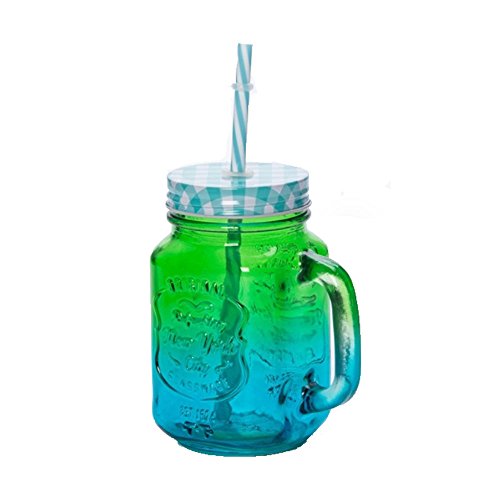 - Jazzy Multicolor Green and Blue Mason Jar with Straw