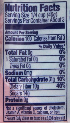 -. Feature : (1) 12-pack of 5 ounce pouches (60 ounces) / Sweetened dried cranberries / 50% less sugar and three times the fiber / A naturally fat-free snack / Gluten-Free, No Sodium