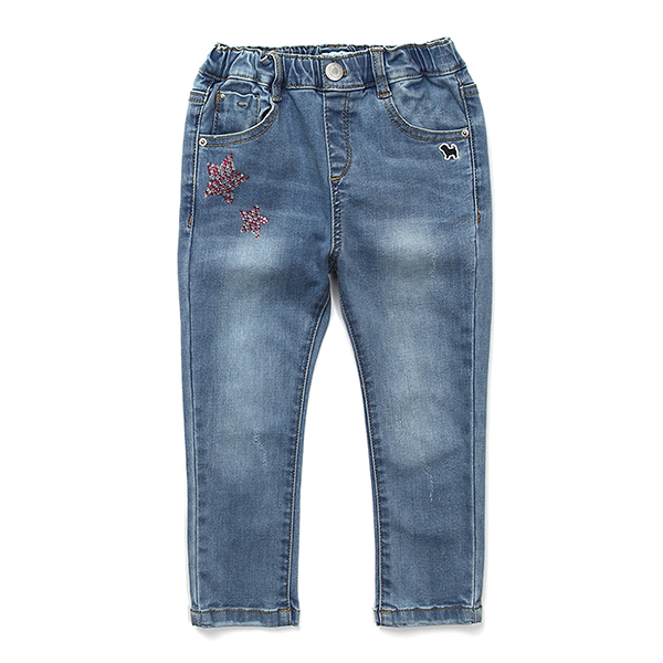 블루독 슬림핏워싱 데님팬츠는 밝은 블루컬러감으로 포인트를 주었고 별그래픽 포인트를주어 여성스러움을강조한 제품입니다