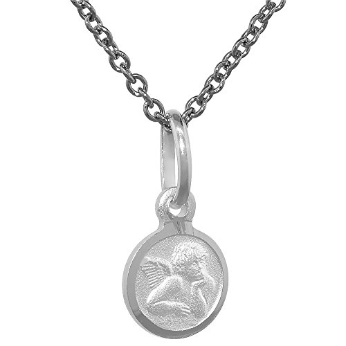 -. Title : Tiny Sterling Silver Guardian Angel Medal Necklace 5/16 inch Round Italy, 0.8mm Chain