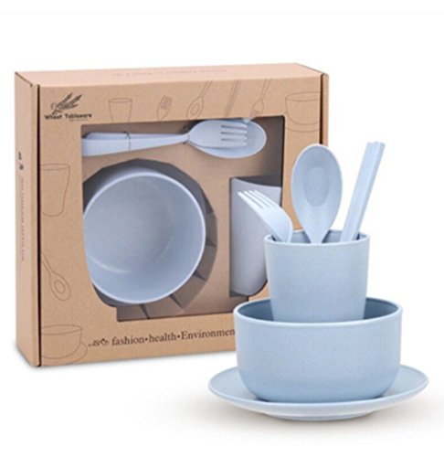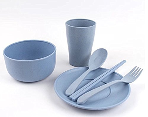 -. Feature : RECLAIMED MATERIALS - Made from renewable and reclaimed materials, natural wheat straw + starch+ 50% food-grade PP. / STRONG AND STURDY - Break and chip resistance for carefree durability, with smooth rim, suitable for soup, noodles and cereal. / NO HEAVY METAL - Food safe grade and dishwasher, microwave, fridge and freezer safe. / ECO-FRIENDLY & EASY TO CLEAN - New biodegradable material, which will self decompose in the soil.Healthy Bowl for Kids, Designed on both esthetics and comfort, Excellent Color will not run or fade. / GIFT SET - 6 pcs set includes 1x bowls, 1 x fork, 1 x spoon and 1 x cup,1x plate,1 x chopstick