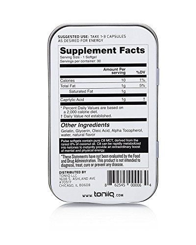 PURE AND PORTABLE: Softgels in a sleek carry-tin ensure you can now get your MCT Oil on-the-go without hassle or mess. But it's more than just a pretty face; Pulse by Toniiq ensures maximum potency by utilizing high-grade C8 MCT.