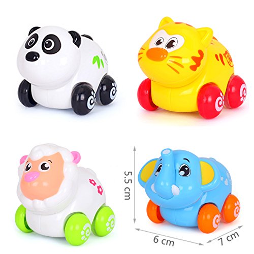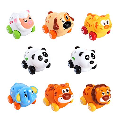Features:This car toy set includes 8 different colorful no battery requaired cartoon animal cars: panda, pig, elephant, tiger, cat, dog, sheep, lion.