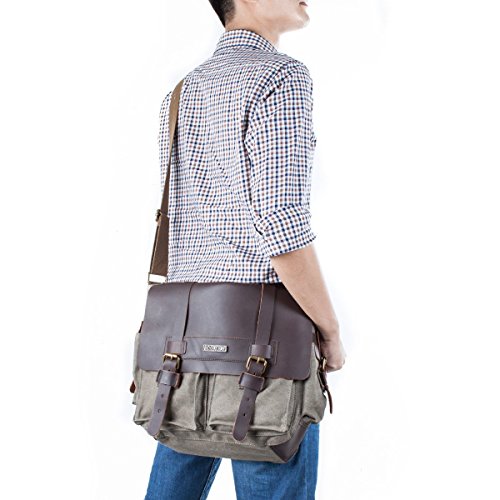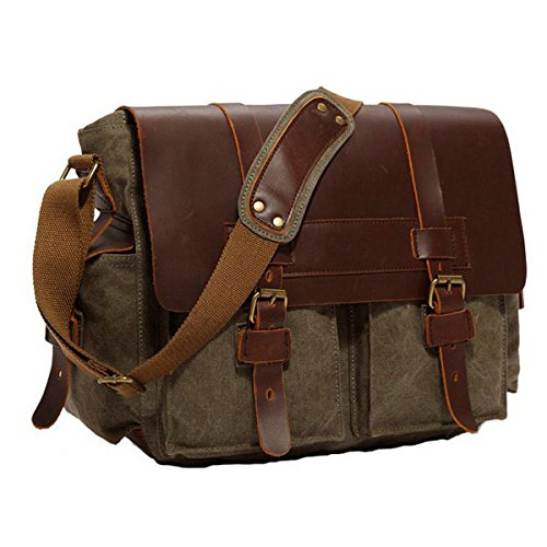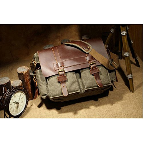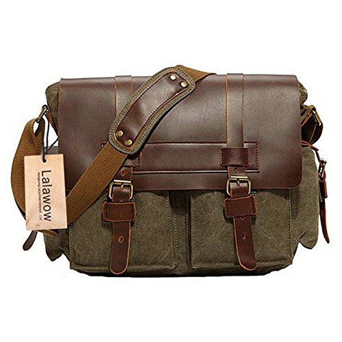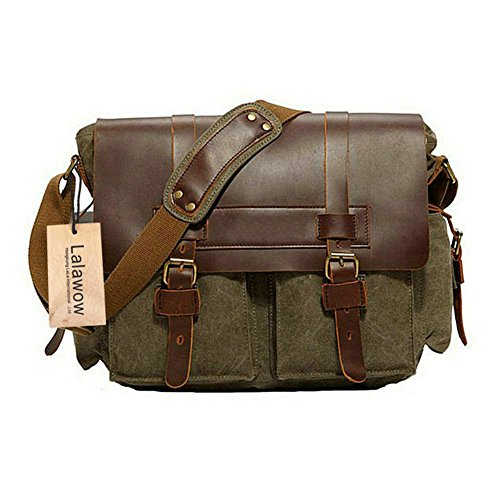 -. Title : Lalawow Unisex Vintage CRAZY HORSE Genuine Leather With Canvas Briefcase Messenger Bag Cross-body Bags For 14inch Laptop Cell Phone Galaxy Note Nexus Ipad 1/2/3/4/5 Mini Gadgets Keys Purse